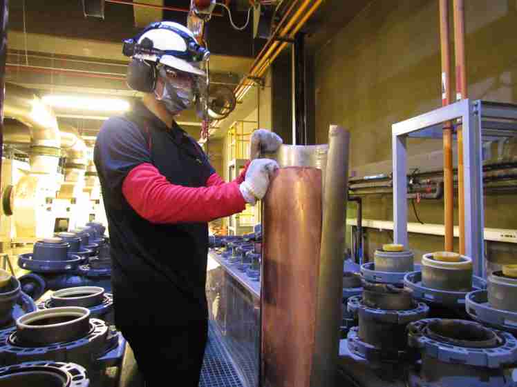 PA直营将废弃物转化成有效的工业或民生原物料,,图为废铜液淬炼后再制成纯度极高的铜管