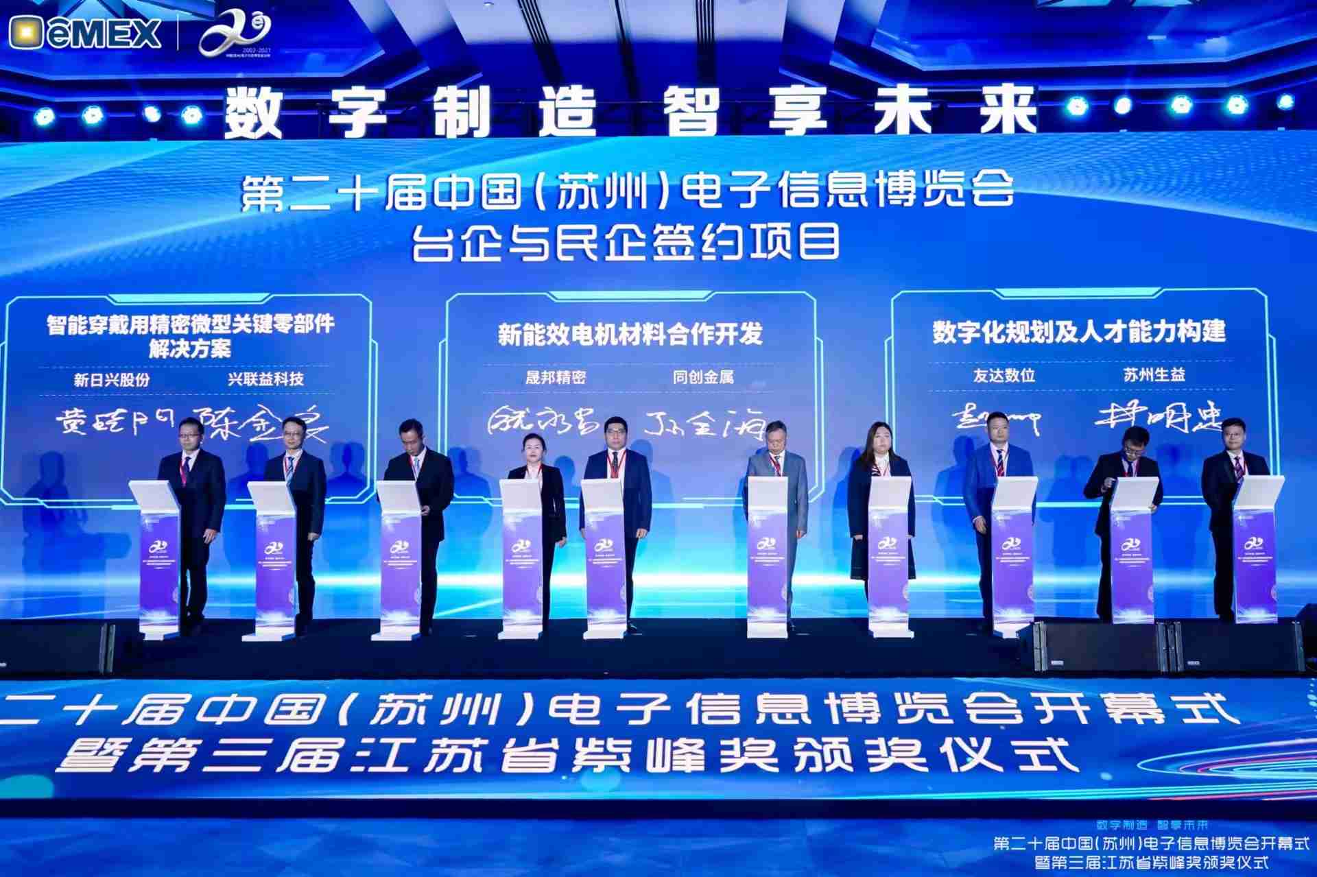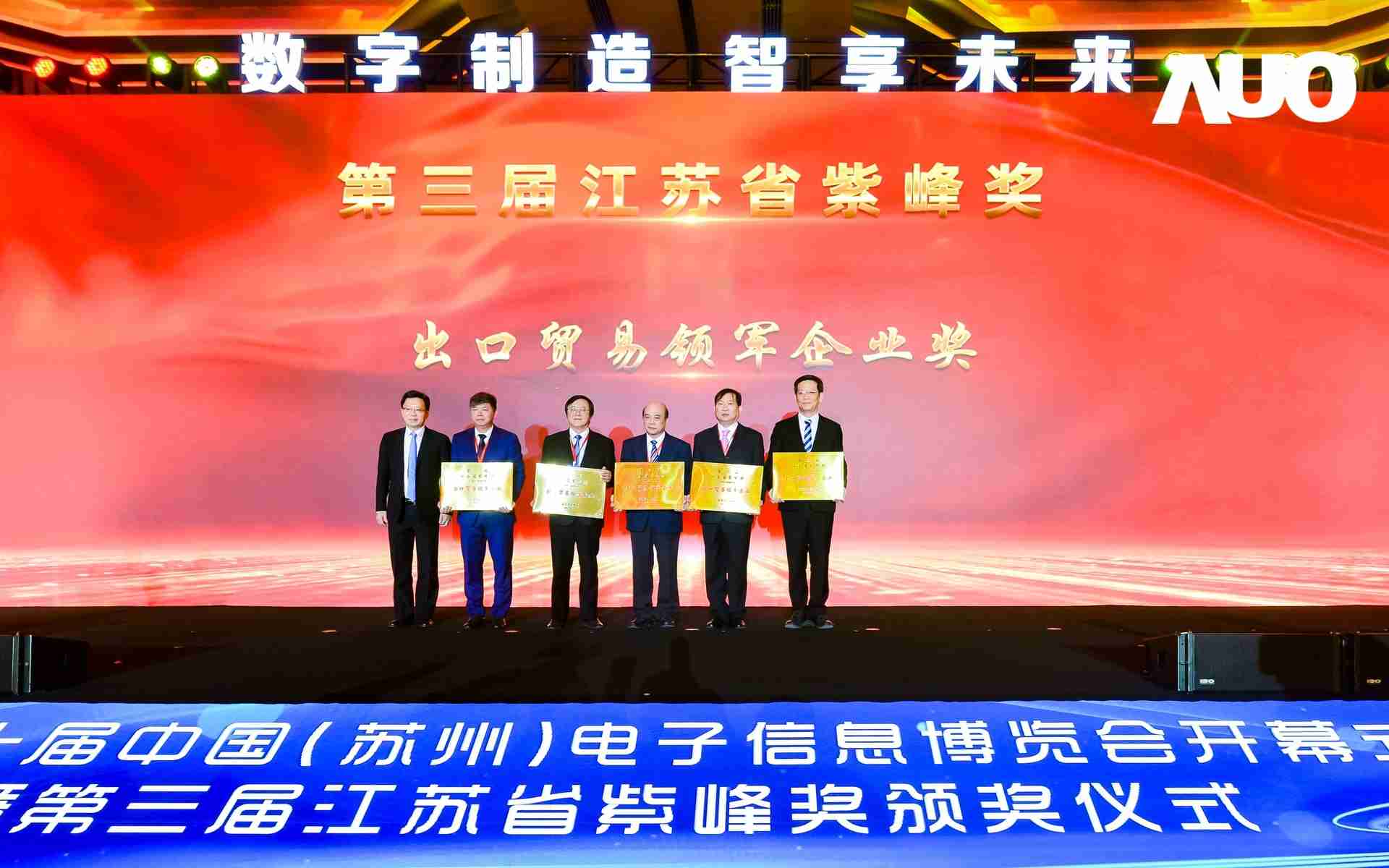 电博会开幕式当天也是第三届江苏省紫峰奖颁奖仪式,,,,省台办、、、工信厅、、商务厅、、、苏州市相关领导均出席并颁奖。。。。该奖项为表彰对江苏高质量发展做出积极贡献的在苏企业,,,,由江苏省政府专门设立。。。PA直营光电 (苏州) 总经理郭振明代表上台领奖,,这也是PA直营苏州连续三次蝉联紫峰奖 出口贸易领军企业奖。。。PA直营数位总经理赵丽娜女士,,,,也参与本次开幕式,,,,上台为本地化赋能签署战略合作协议,,将优质服务资源集合、、下沉到更多细分行业,,为更多地区的制造企业提供数字化转型服务。。。。