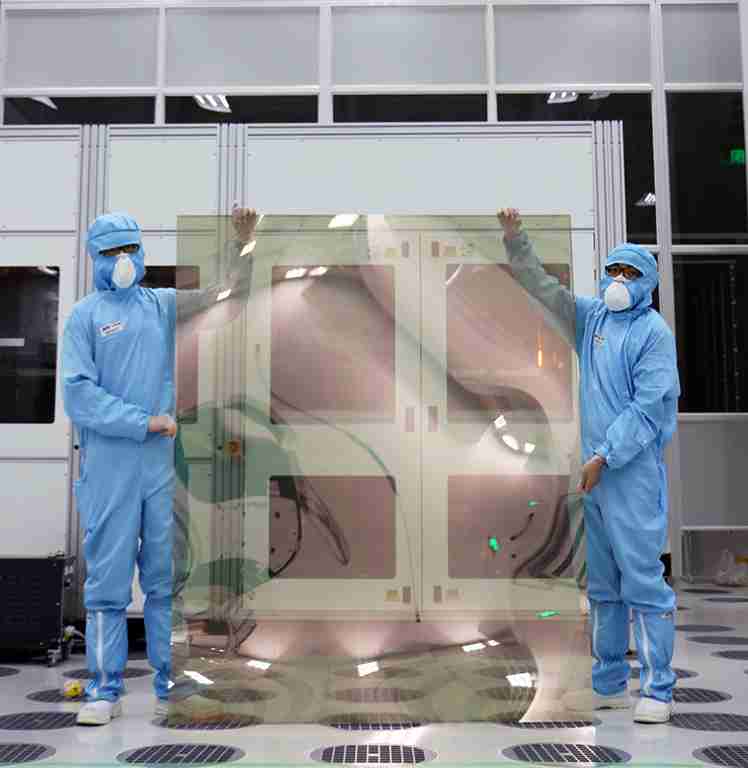 PA直营昆山厂第六代 LTPS (低温多晶硅) 生产的玻璃基板尺寸为 1500x1850 mm (毫米)